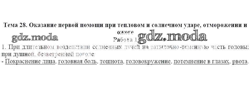 ОТВЕТ на задание № 1 Рабочая тетрадь по ОБЖ 6 класс Демидов