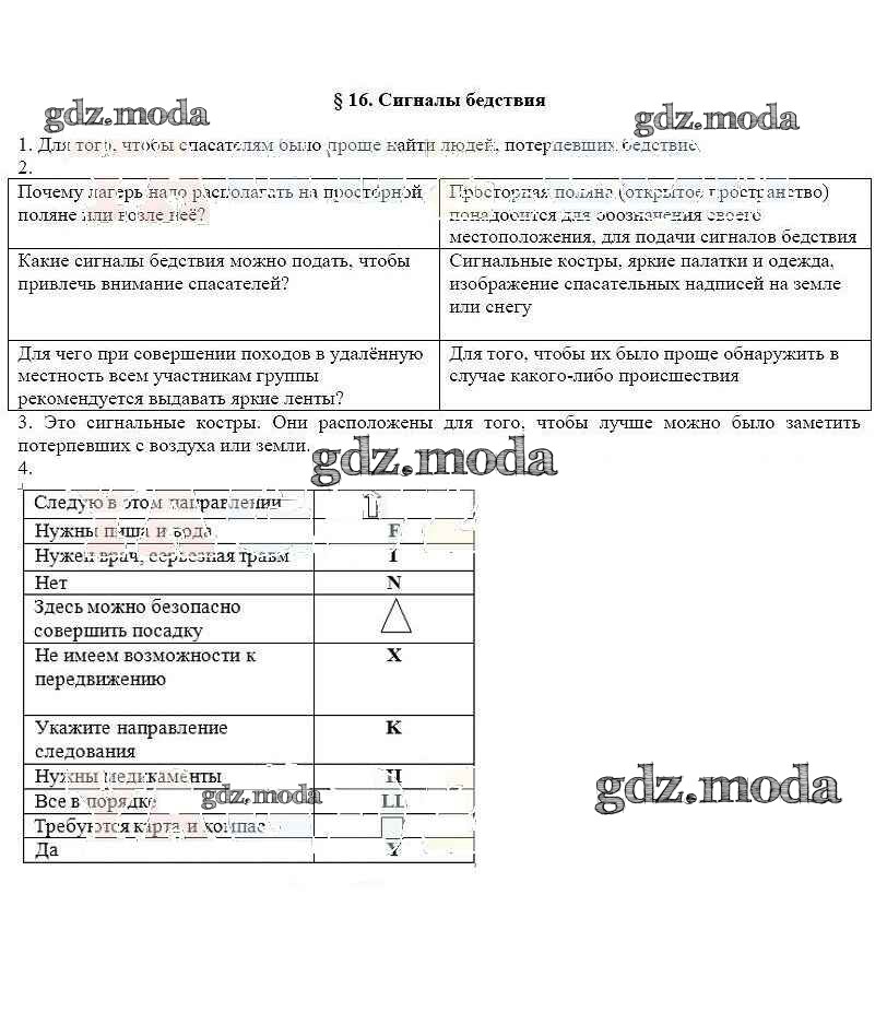 ГДЗ решение к заданию № §16 ОБЖ 6 класс рабочая тетрадь Латчук В.Н. Дрофа 2017 ФГОС бесплатно на гдз.мода!