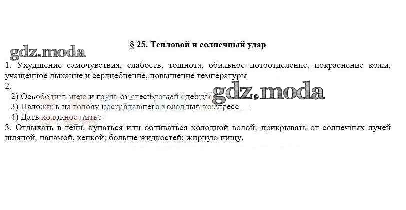 ГДЗ решение к заданию № §25 ОБЖ 6 класс рабочая тетрадь Латчук В.Н. Дрофа 2017 ФГОС бесплатно на гдз.мода!