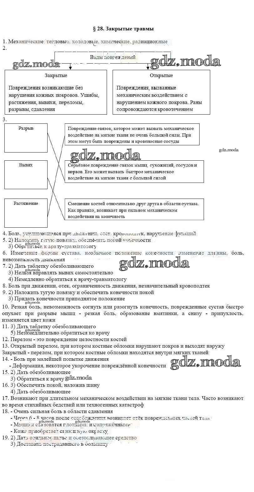 ГДЗ решение к заданию № §28 ОБЖ 6 класс рабочая тетрадь Латчук В.Н. Дрофа 2017 ФГОС бесплатно на гдз.мода!