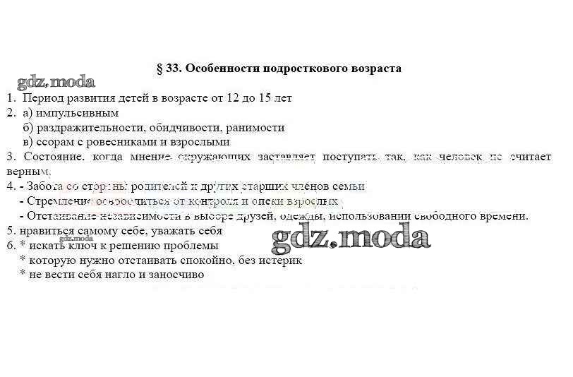 ГДЗ решение к заданию № §33 ОБЖ 6 класс рабочая тетрадь Латчук В.Н. Дрофа 2017 ФГОС бесплатно на гдз.мода!