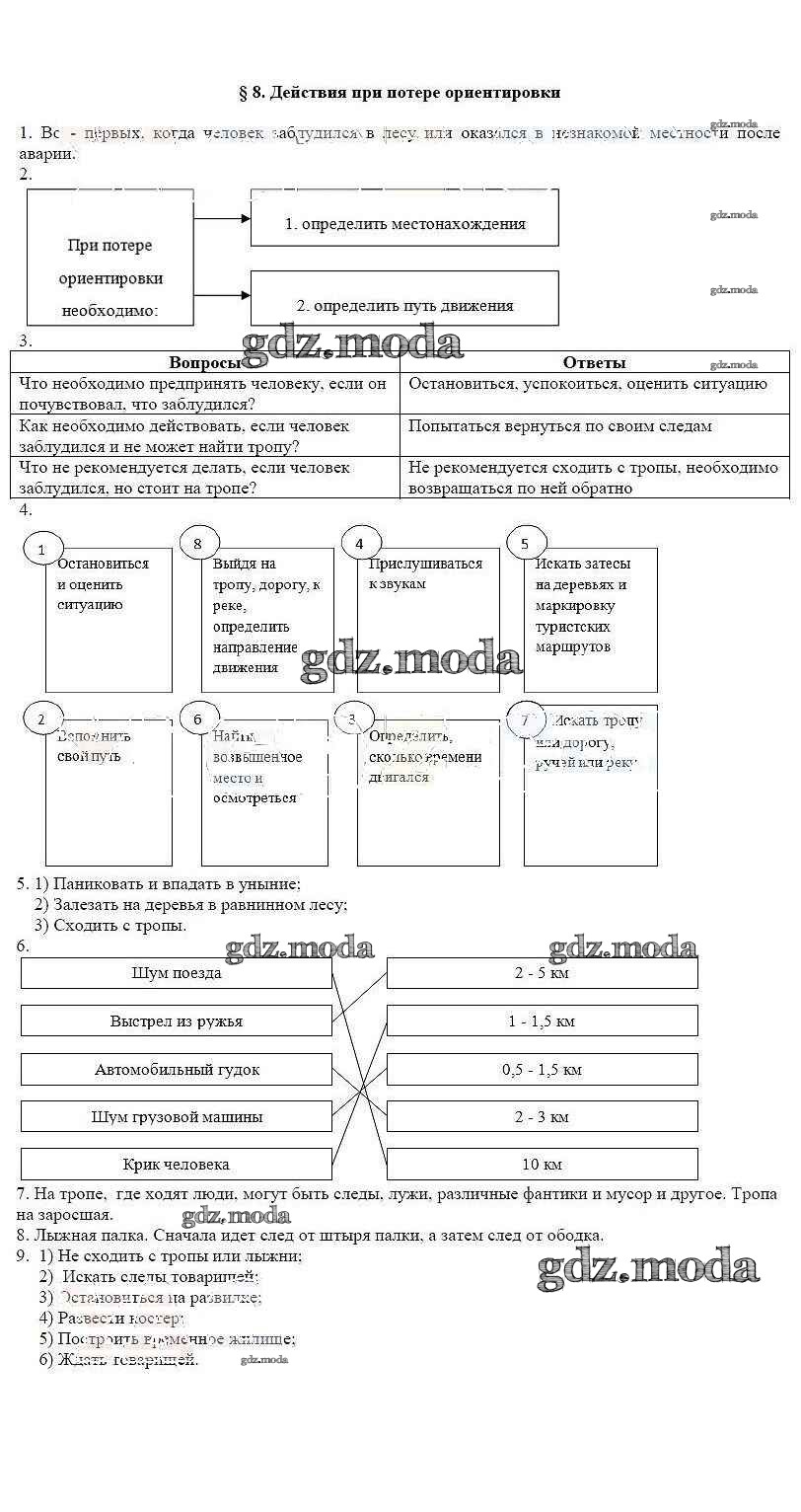 ГДЗ решение к заданию № §8 ОБЖ 6 класс рабочая тетрадь Латчук В.Н. Дрофа 2017 ФГОС бесплатно на гдз.мода!