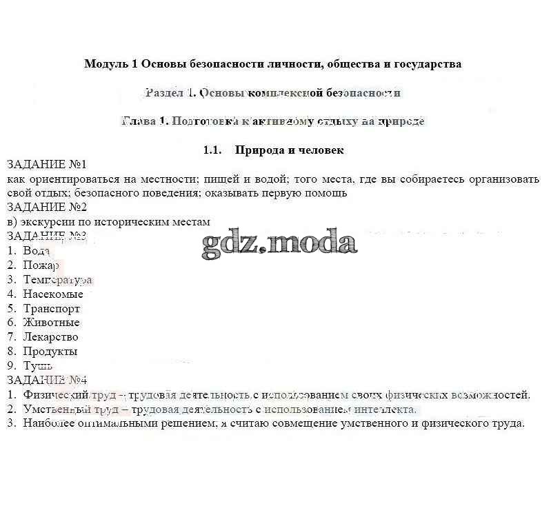 ОТВЕТ на задание № 1.1 Рабочая тетрадь по ОБЖ 6 класс Смирнов