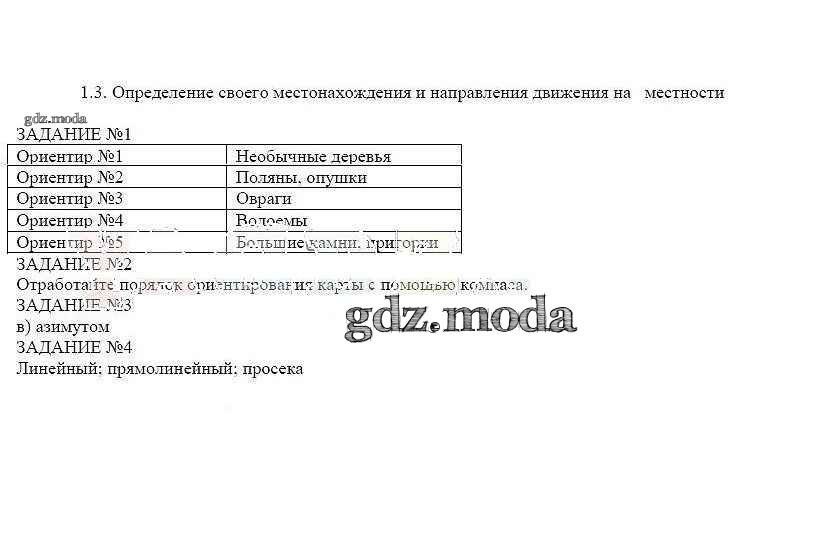 ГДЗ решение к заданию № 1.3 ОБЖ 6 класс рабочая тетрадь Смирнов А.Т. Просвещение 2016 ФГОС бесплатно на гдз.мода!