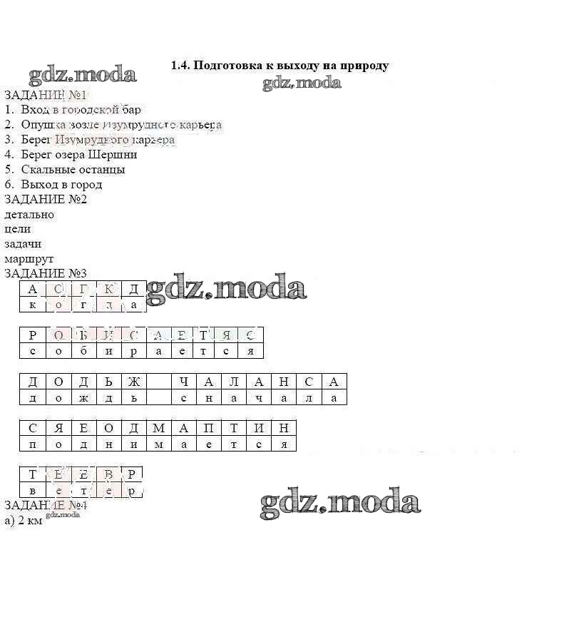 ГДЗ решение к заданию № 1.4 ОБЖ 6 класс рабочая тетрадь Смирнов А.Т. Просвещение 2016 ФГОС бесплатно на гдз.мода!