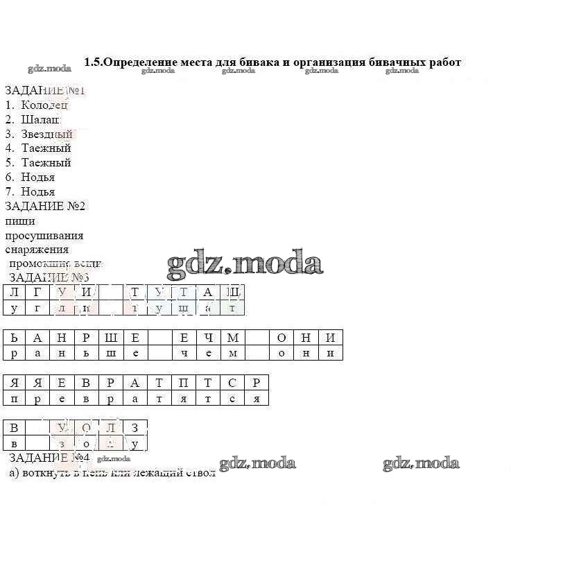 ГДЗ решение к заданию № 1.5 ОБЖ 6 класс рабочая тетрадь Смирнов А.Т. Просвещение 2016 ФГОС бесплатно на гдз.мода!
