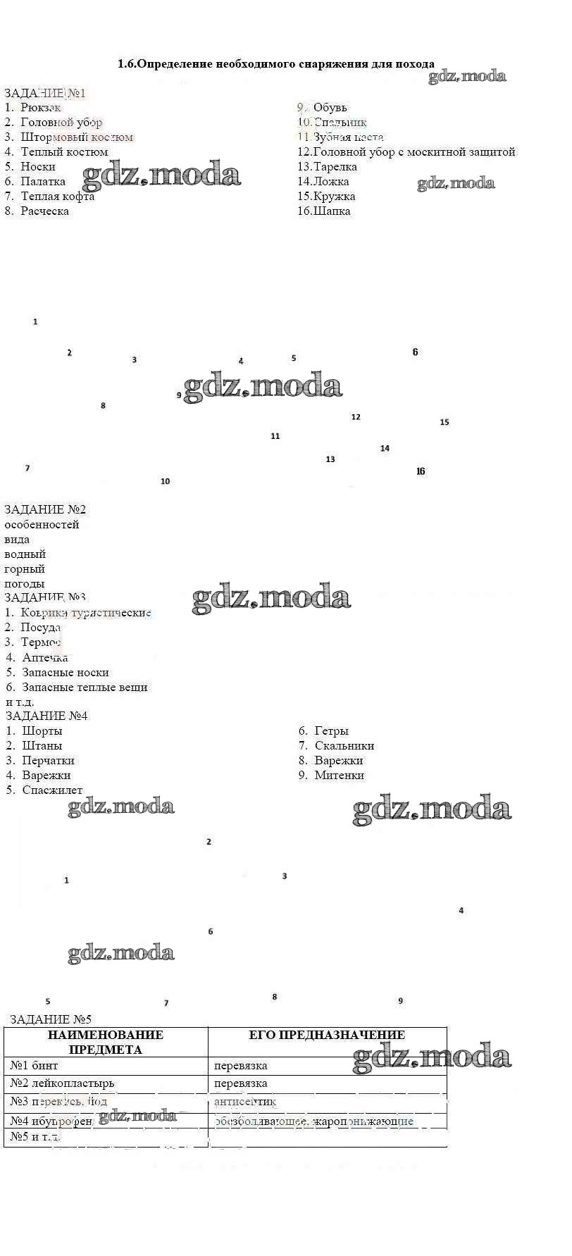 ГДЗ решение к заданию № 1.6 ОБЖ 6 класс рабочая тетрадь Смирнов А.Т. Просвещение 2016 ФГОС бесплатно на гдз.мода!
