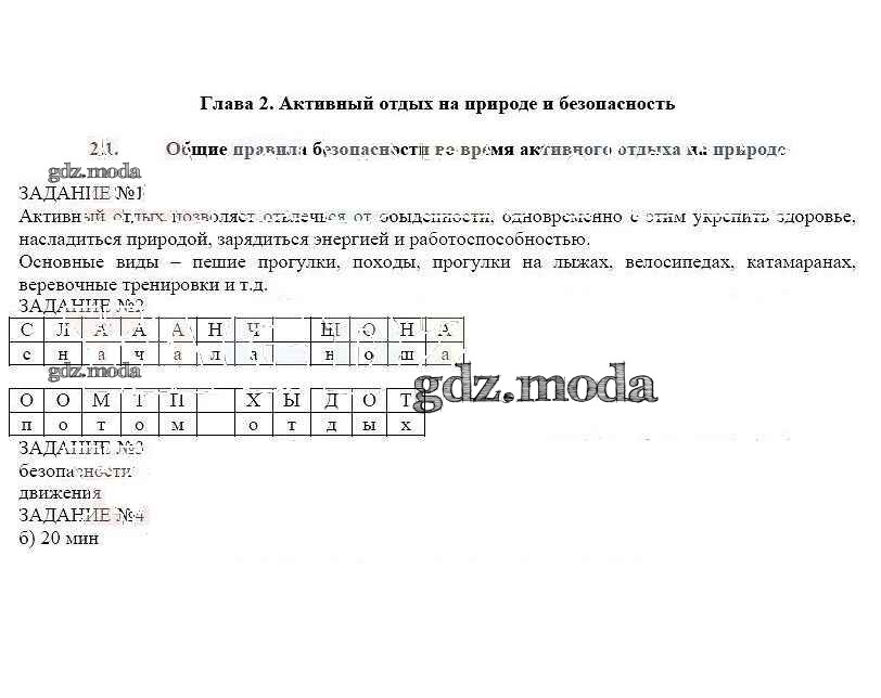 ОТВЕТ на задание № 2.1 Рабочая тетрадь по ОБЖ 6 класс Смирнов