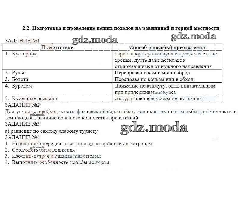 ГДЗ решение к заданию № 2.2 ОБЖ 6 класс рабочая тетрадь Смирнов А.Т. Просвещение 2016 ФГОС бесплатно на гдз.мода!