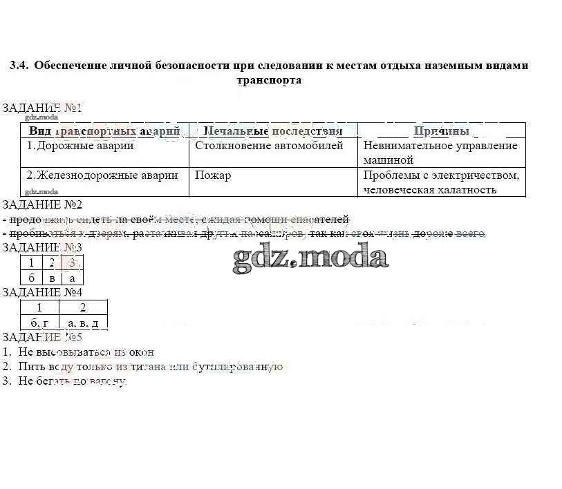 ГДЗ решение к заданию № 3.4 ОБЖ 6 класс рабочая тетрадь Смирнов А.Т. Просвещение 2016 ФГОС бесплатно на гдз.мода!