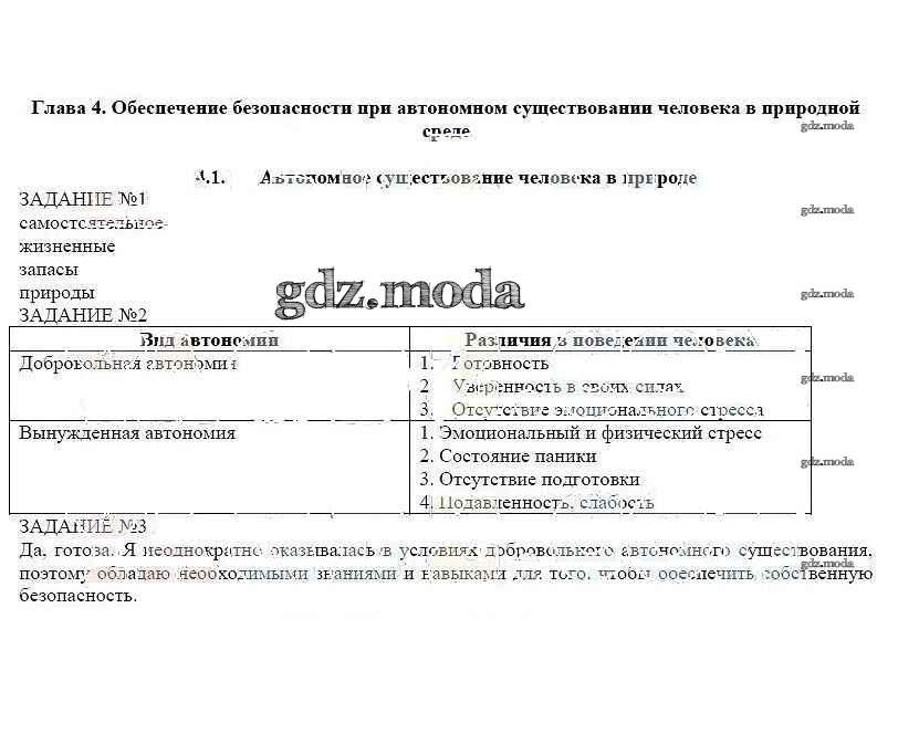 ОТВЕТ на задание № 4.1 Рабочая тетрадь по ОБЖ 6 класс Смирнов