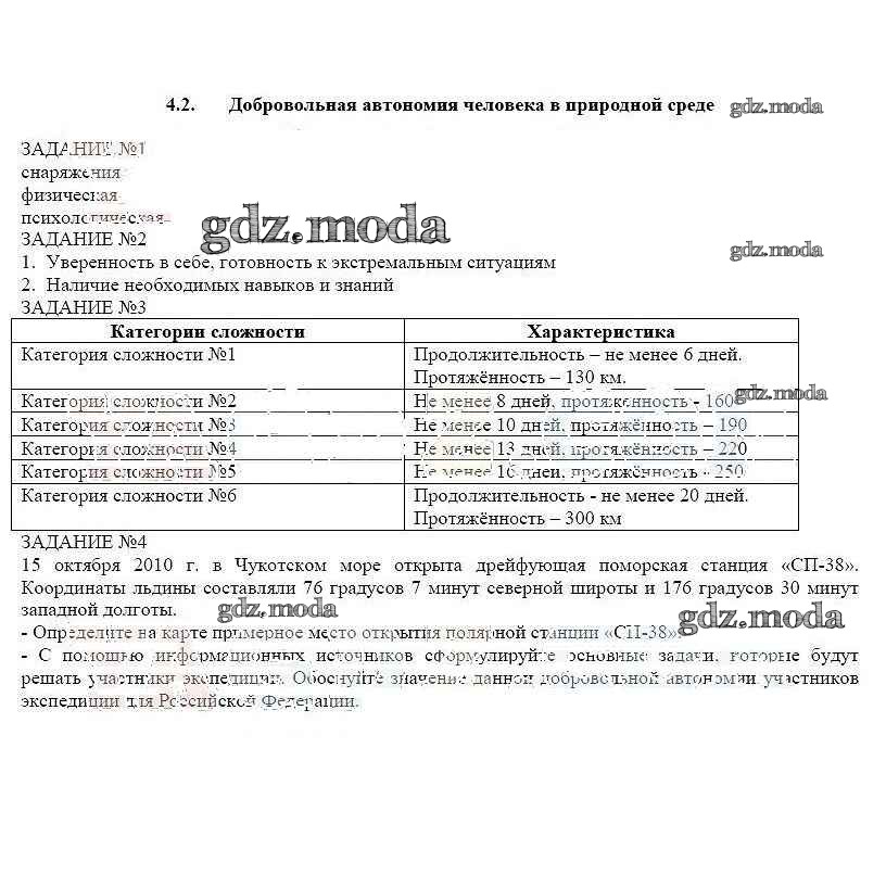 ГДЗ решение к заданию № 4.2 ОБЖ 6 класс рабочая тетрадь Смирнов А.Т. Просвещение 2016 ФГОС бесплатно на гдз.мода!