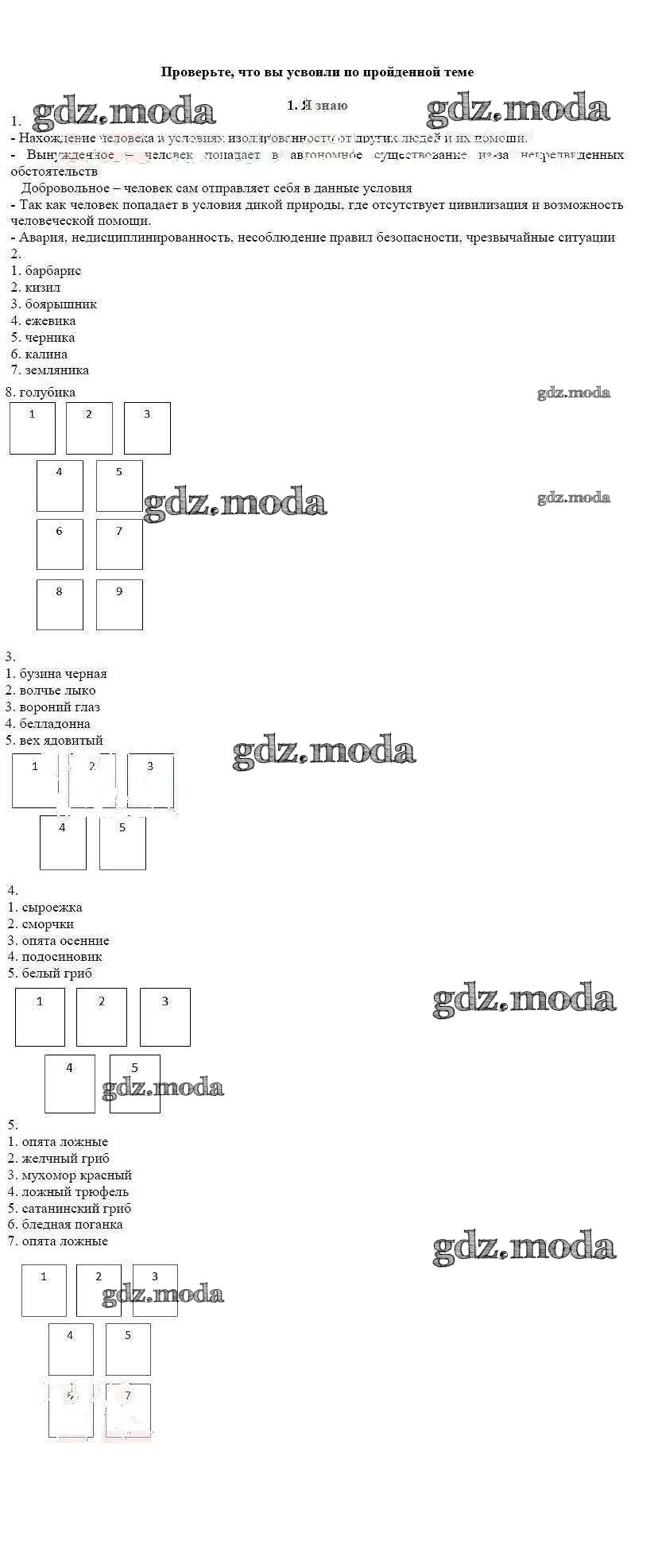 ГДЗ решение к заданию № Проверьте свои знания ОБЖ 6 класс рабочая тетрадь Смирнов А.Т. Просвещение 2016 ФГОС бесплатно на гдз.мода!