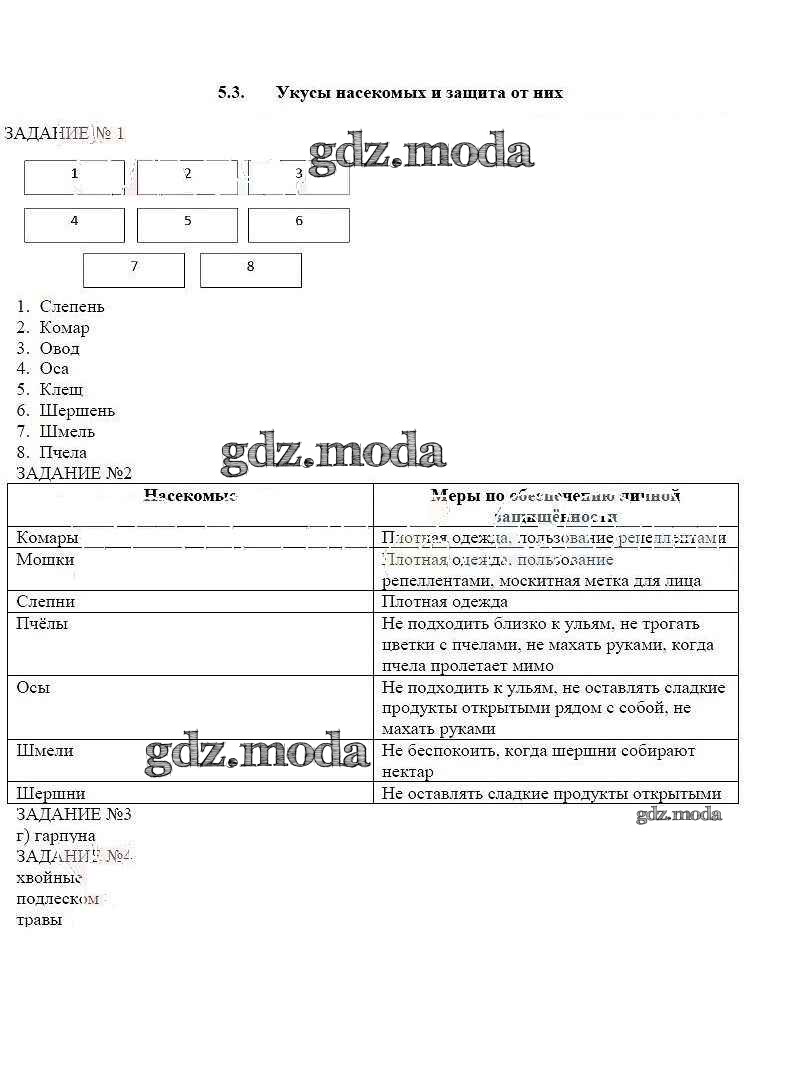 ГДЗ решение к заданию № 5.3 ОБЖ 6 класс рабочая тетрадь Смирнов А.Т. Просвещение 2016 ФГОС бесплатно на гдз.мода!