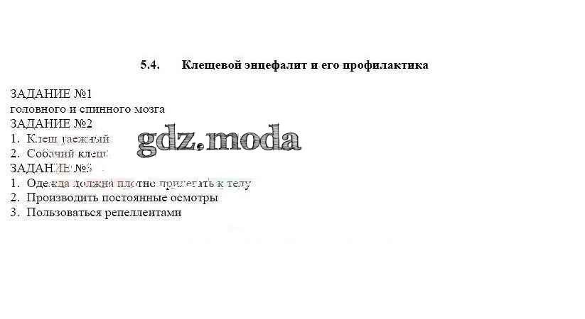 ГДЗ решение к заданию № 5.4 ОБЖ 6 класс рабочая тетрадь Смирнов А.Т. Просвещение 2016 ФГОС бесплатно на гдз.мода!