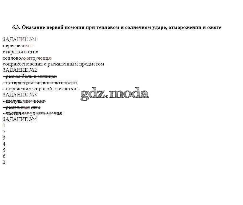 ГДЗ решение к заданию № 6.3 ОБЖ 6 класс рабочая тетрадь Смирнов А.Т. Просвещение 2016 ФГОС бесплатно на гдз.мода!