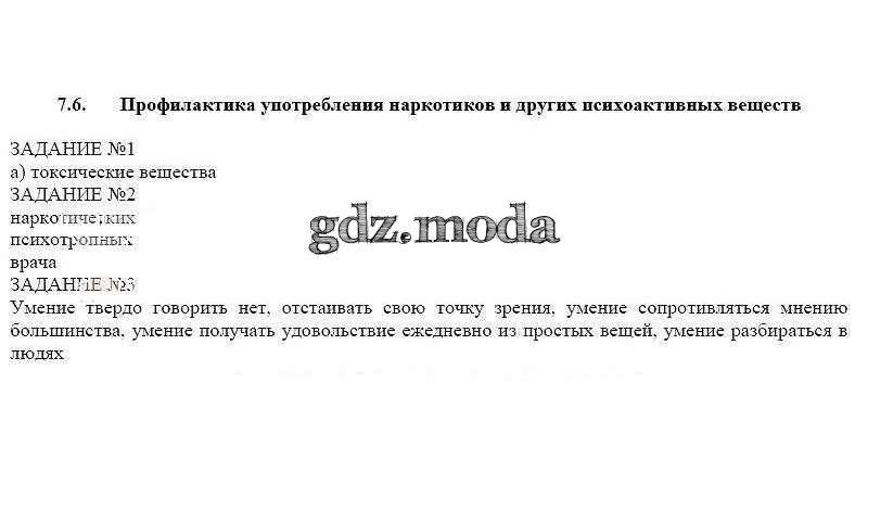 ОТВЕТ на задание № 7.6 Рабочая тетрадь по ОБЖ 6 класс Смирнов