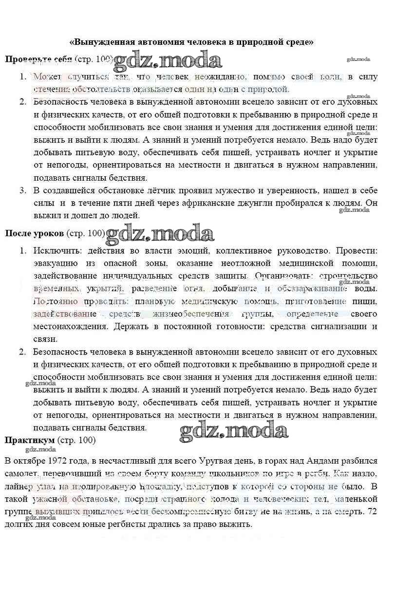 ОТВЕТ на задание № 100 Учебник по ОБЖ 6 класс Смирнов