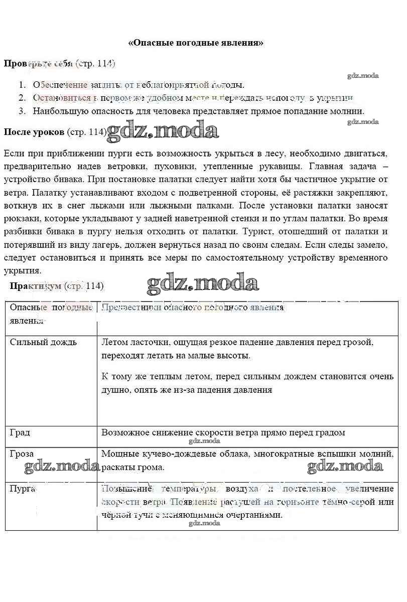 ГДЗ решение к заданию № 114 ОБЖ 6 класс Смирнов А.Т. Просвещение 2018 ФГОС бесплатно на гдз.мода!