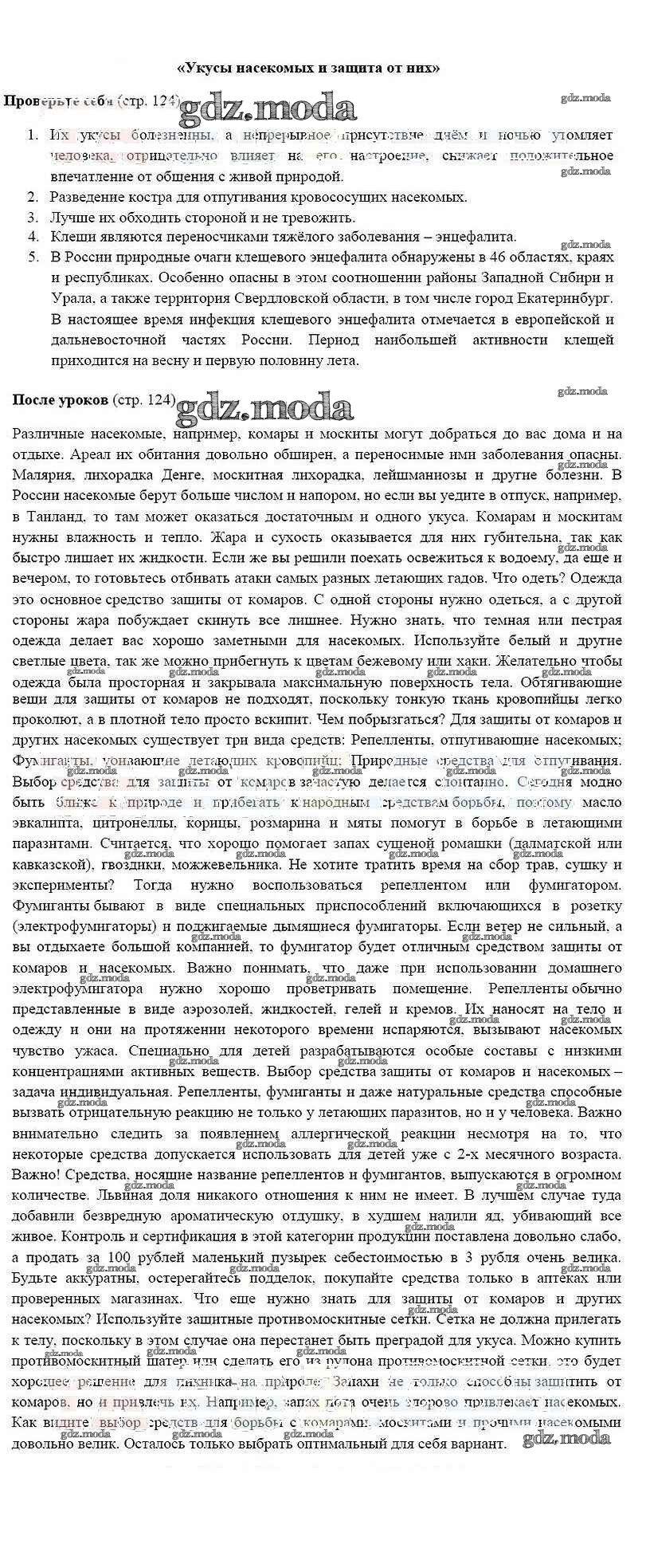 ГДЗ решение к заданию № 124 ОБЖ 6 класс Смирнов А.Т. Просвещение 2018 ФГОС бесплатно на гдз.мода!