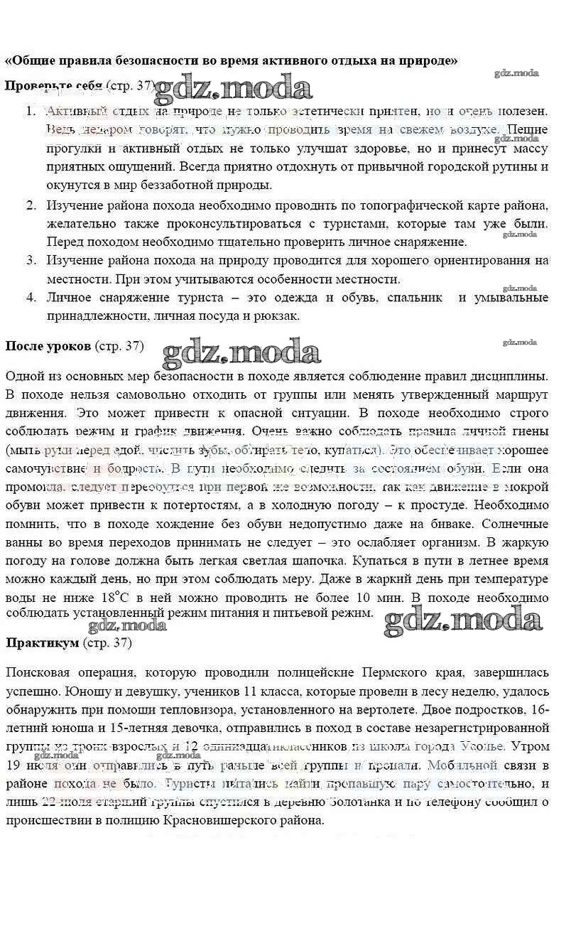 ОТВЕТ на задание № 37 Учебник по ОБЖ 6 класс Смирнов