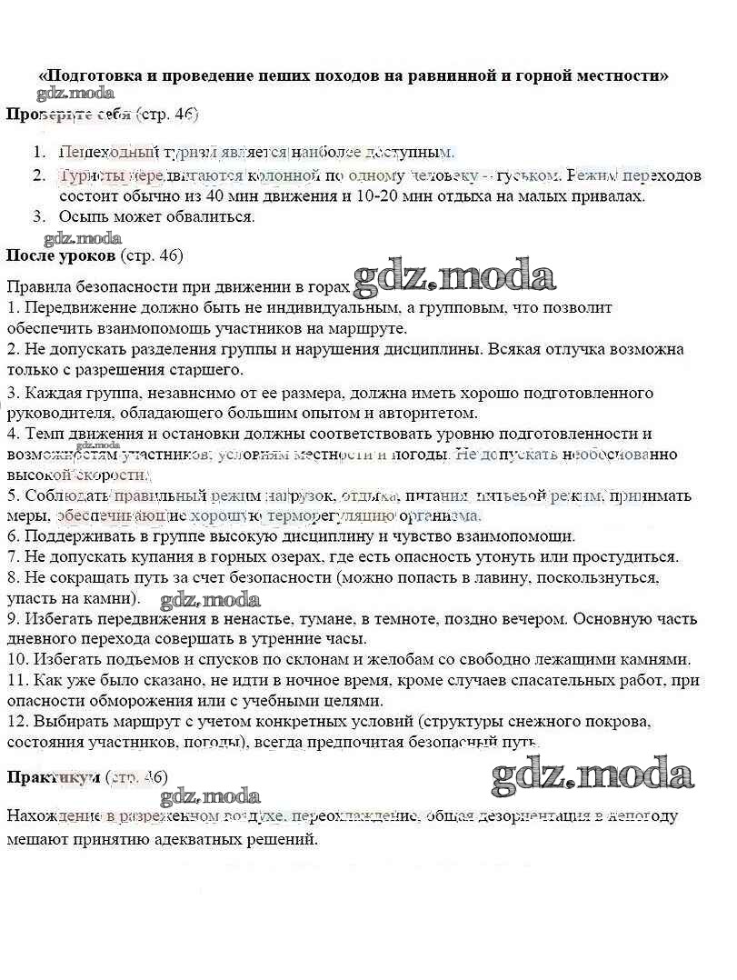 ГДЗ решение к заданию № 46 ОБЖ 6 класс Смирнов А.Т. Просвещение 2018 ФГОС бесплатно на гдз.мода!