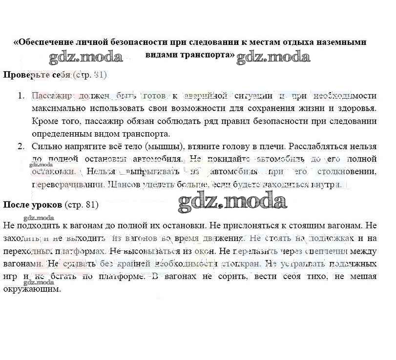 ГДЗ решение к заданию № 81 ОБЖ 6 класс Смирнов А.Т. Просвещение 2018 ФГОС бесплатно на гдз.мода!