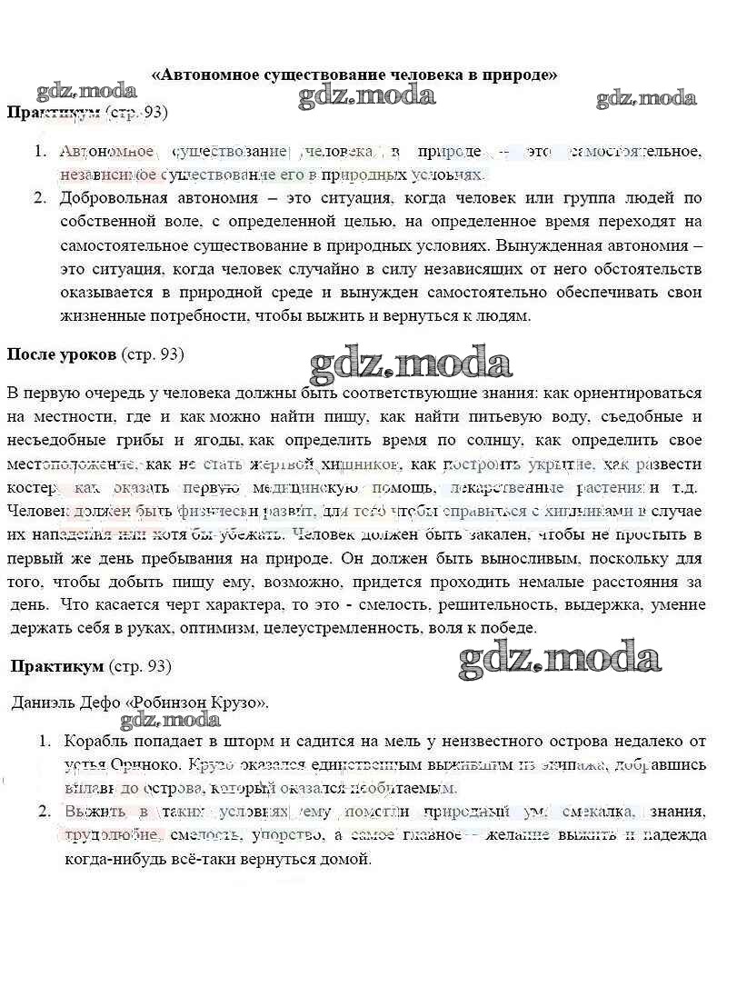 ГДЗ решение к заданию № 93 ОБЖ 6 класс Смирнов А.Т. Просвещение 2018 ФГОС бесплатно на гдз.мода!