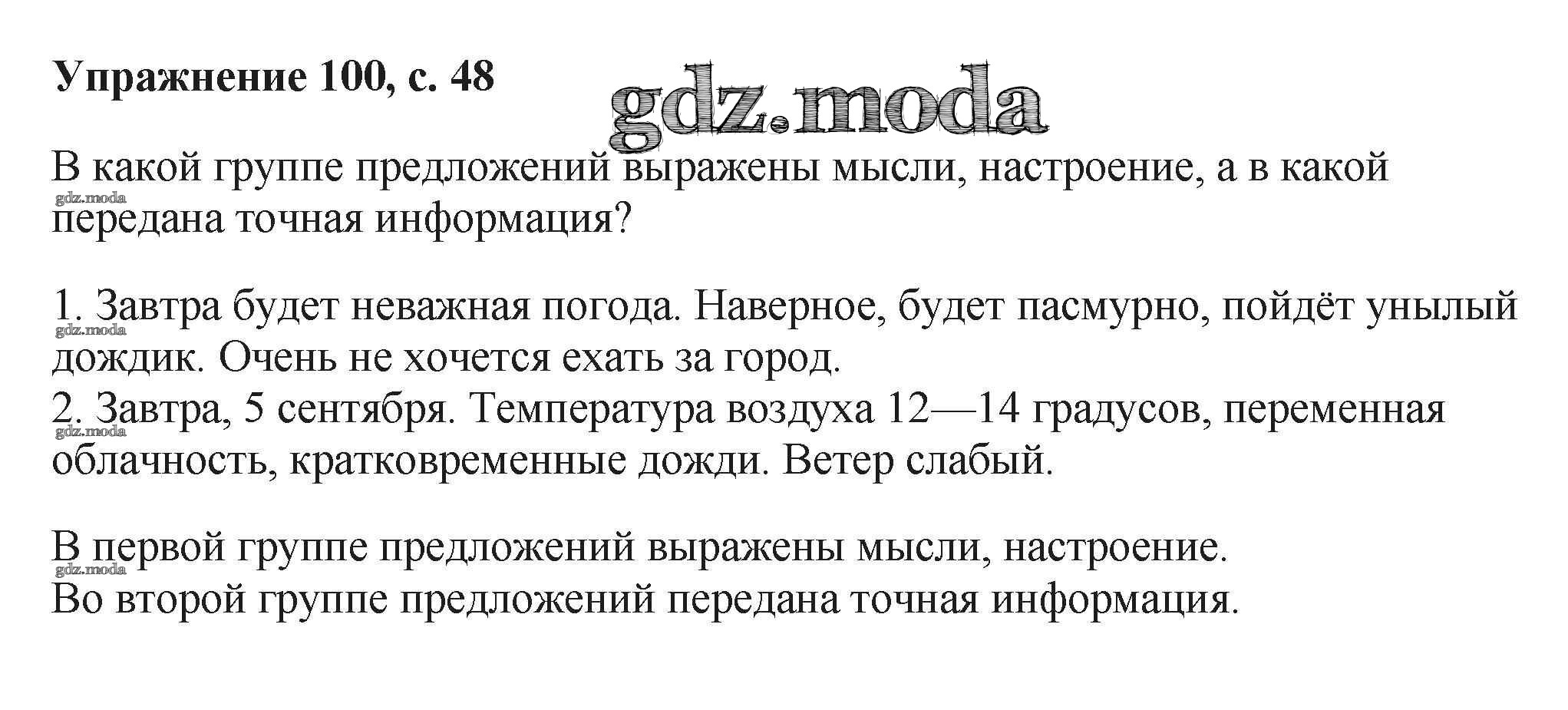 ОТВЕТ на задание № 100 Учебник по Русскому языку 6 класс Баранов