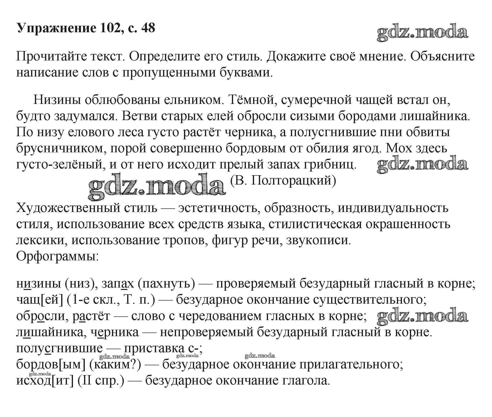 ГДЗ решение к заданию № 102 Русский язык 6 класс Баранов М.Т. Просвещение, Просвещение 2015, 2022 Часть 1, Часть 2 ФГОС бесплатно на гдз.мода!
