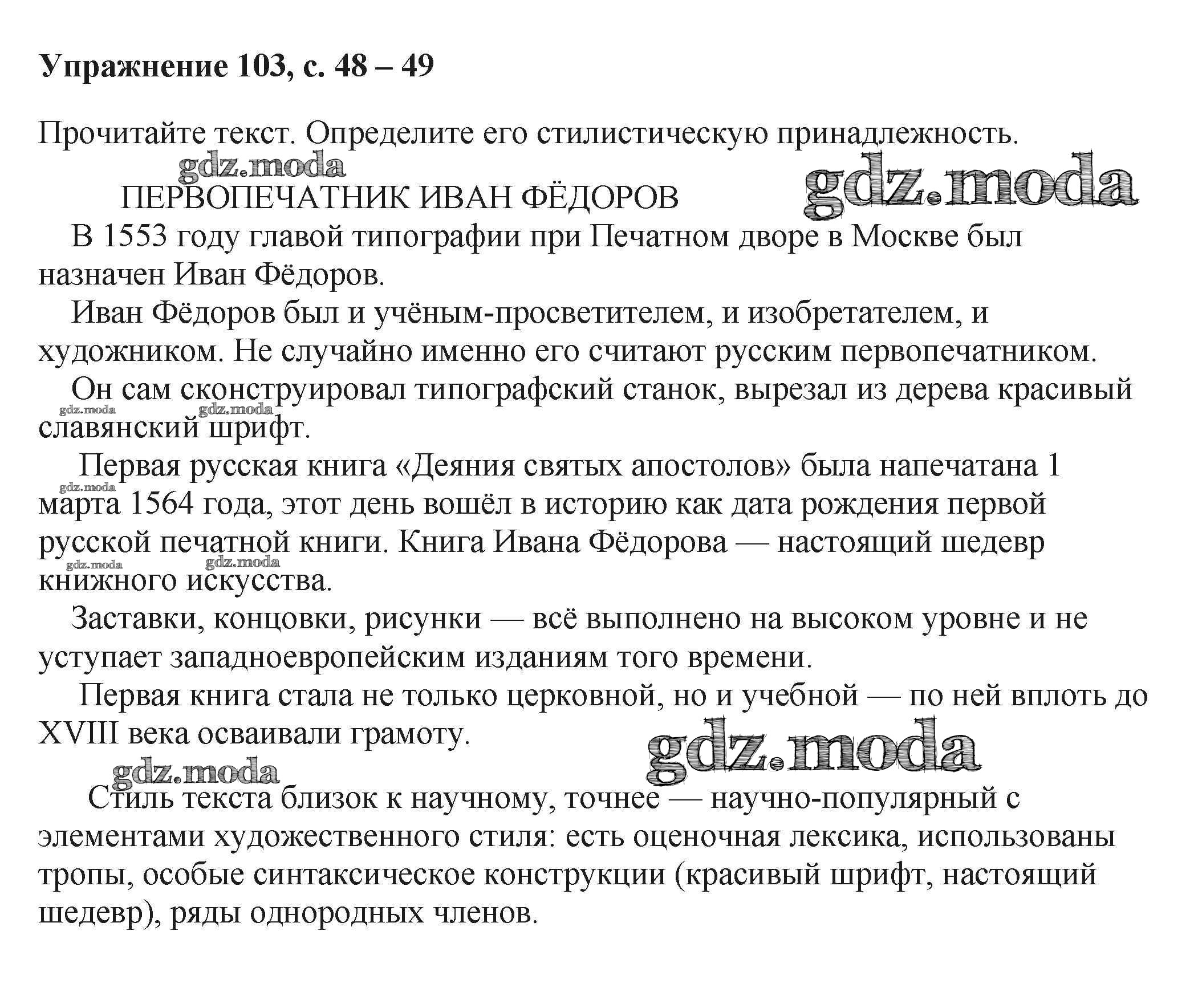 ОТВЕТ на задание № 103 Учебник по Русскому языку 6 класс Баранов