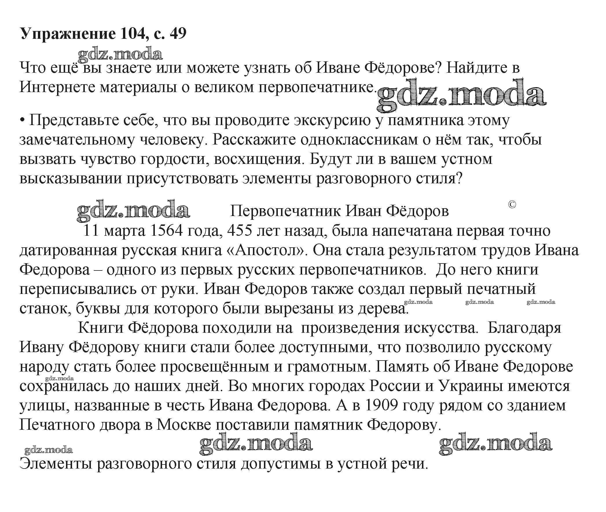 ОТВЕТ на задание № 104 Учебник по Русскому языку 6 класс Баранов