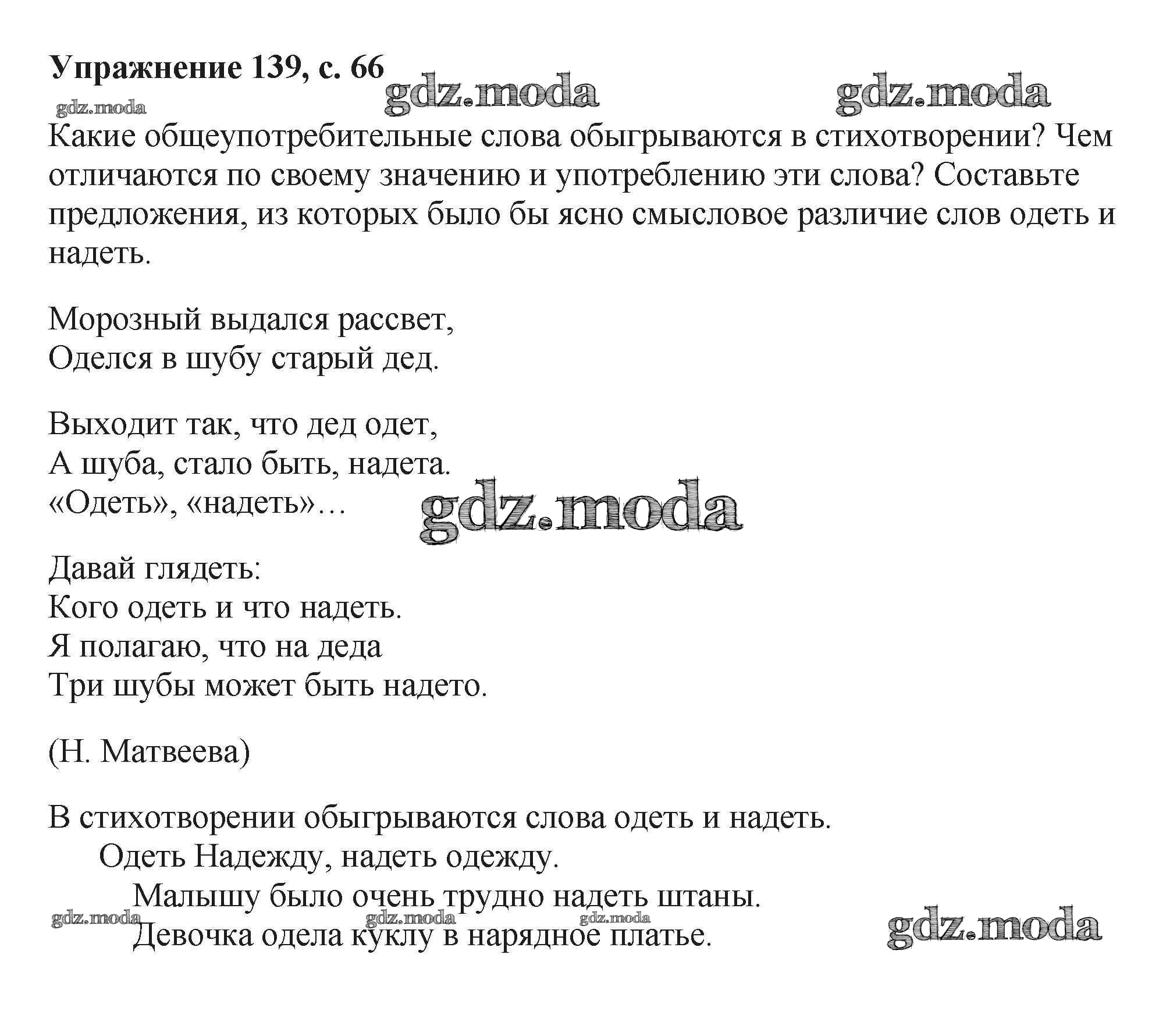 ОТВЕТ на задание № 139 Учебник по Русскому языку 6 класс Баранов