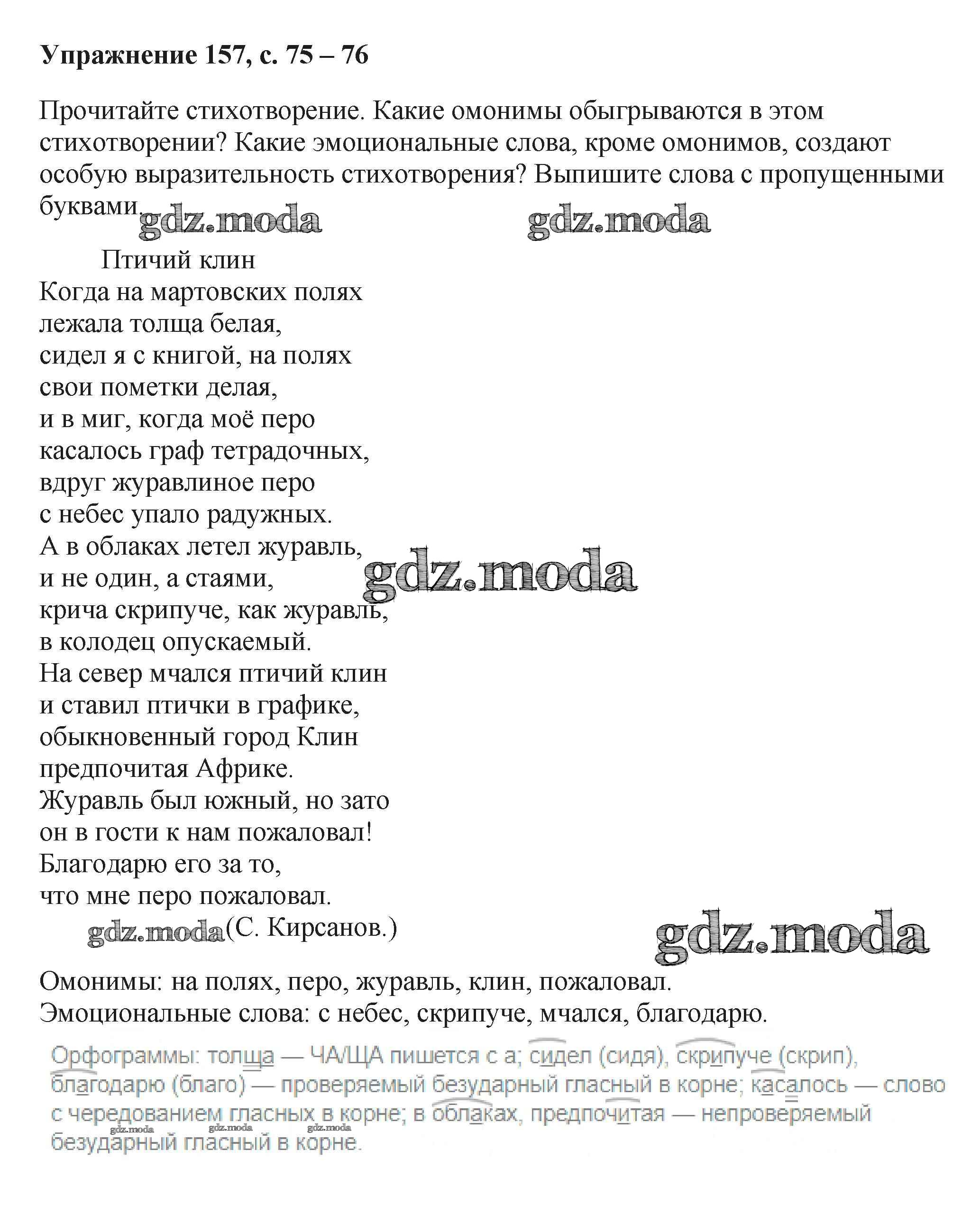 ОТВЕТ на задание № 157 Учебник по Русскому языку 6 класс Баранов