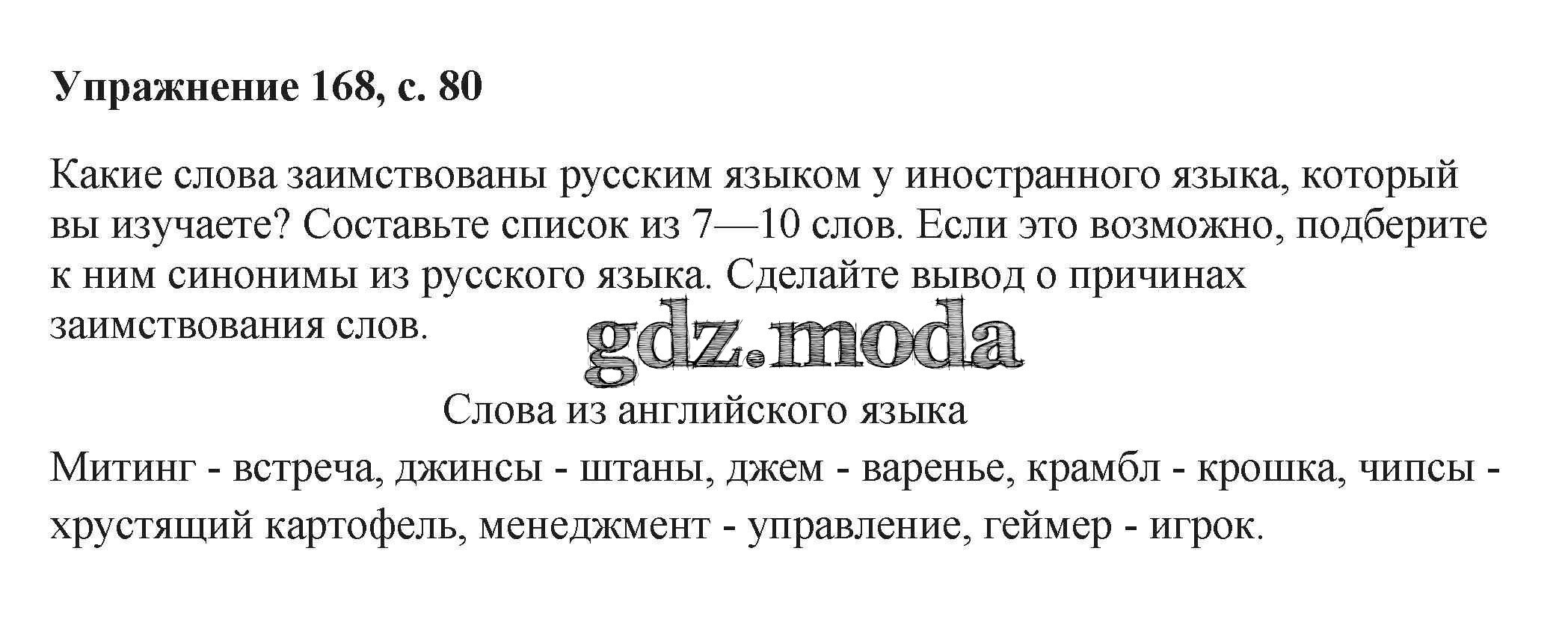 ОТВЕТ на задание № 168 Учебник по Русскому языку 6 класс Баранов
