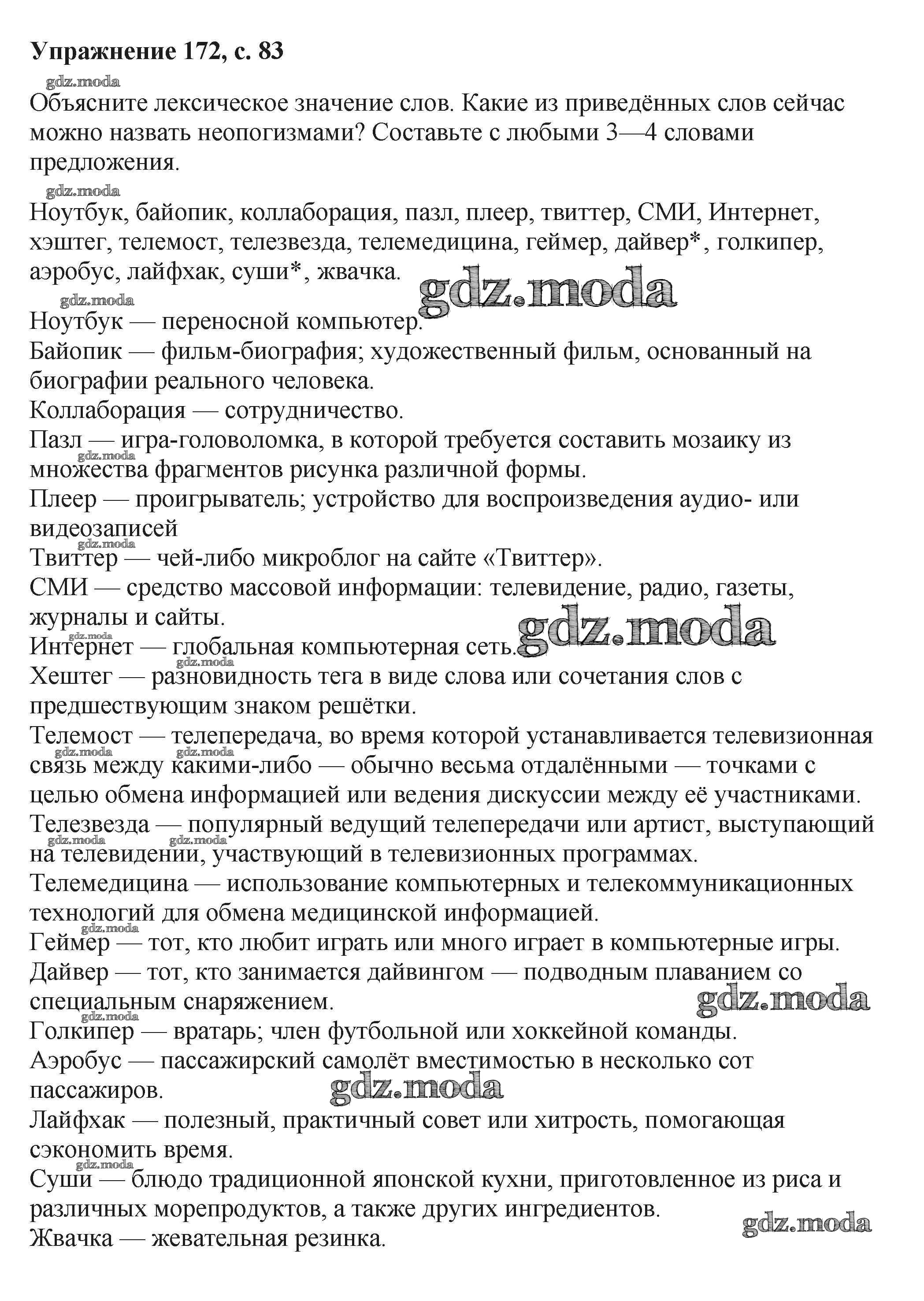 ГДЗ решение к заданию № 172 Русский язык 6 класс Баранов М.Т. Просвещение, Просвещение 2015, 2022 Часть 1, Часть 2 ФГОС бесплатно на гдз.мода!