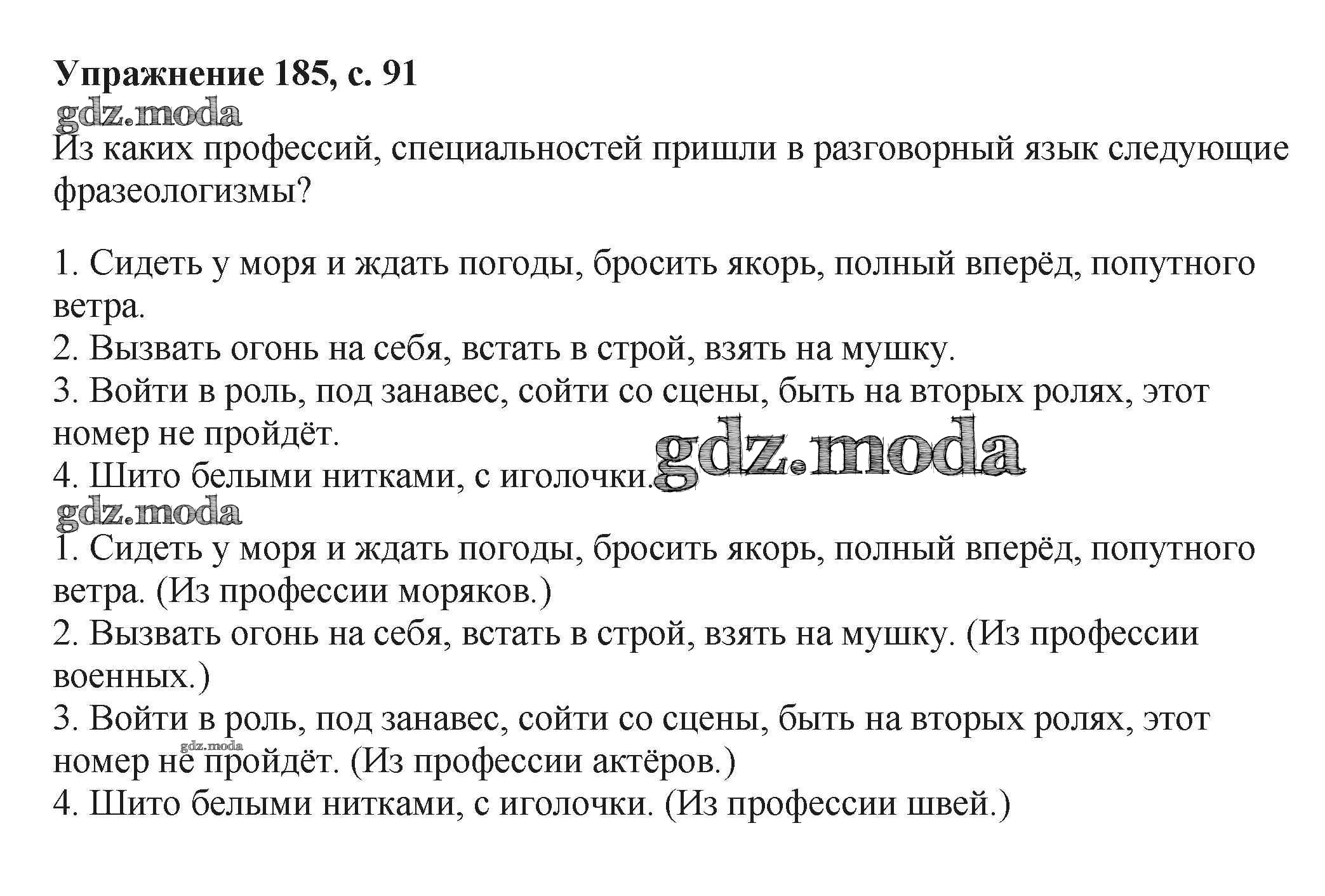 ГДЗ решение к заданию № 185 Русский язык 6 класс Баранов М.Т. Просвещение, Просвещение 2015, 2022 Часть 1, Часть 2 ФГОС бесплатно на гдз.мода!