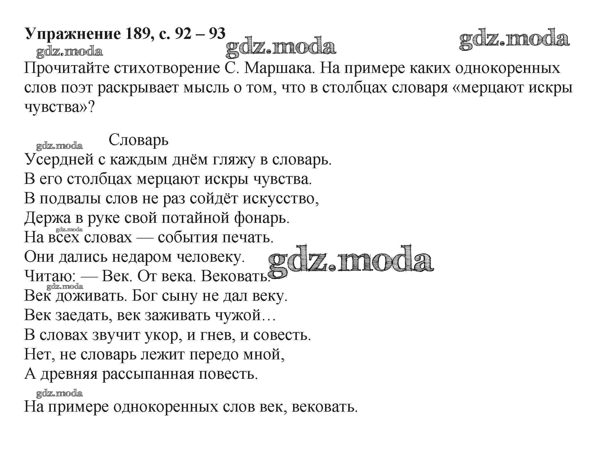 ОТВЕТ на задание № 189 Учебник по Русскому языку 6 класс Баранов