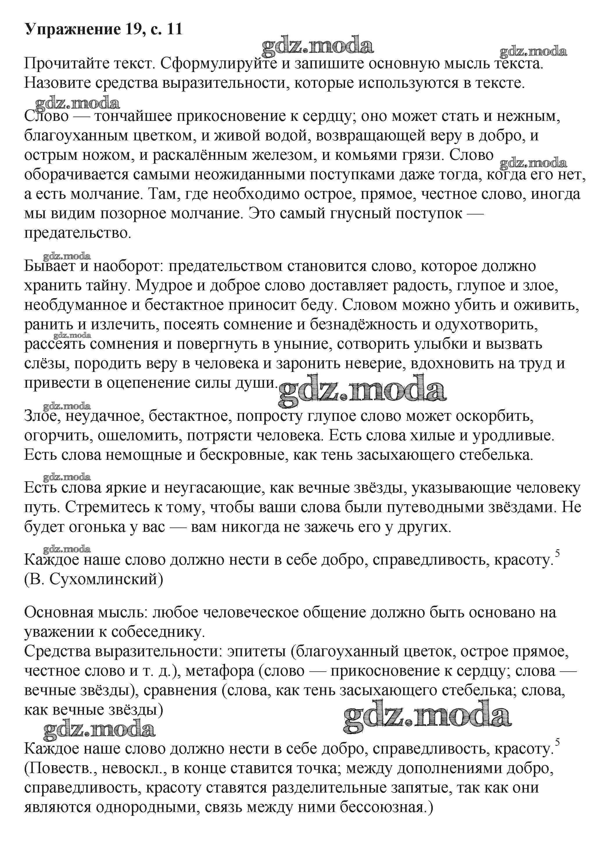 ГДЗ решение к заданию № 19 Русский язык 6 класс Баранов М.Т. Просвещение, Просвещение 2015, 2022 Часть 1, Часть 2 ФГОС бесплатно на гдз.мода!