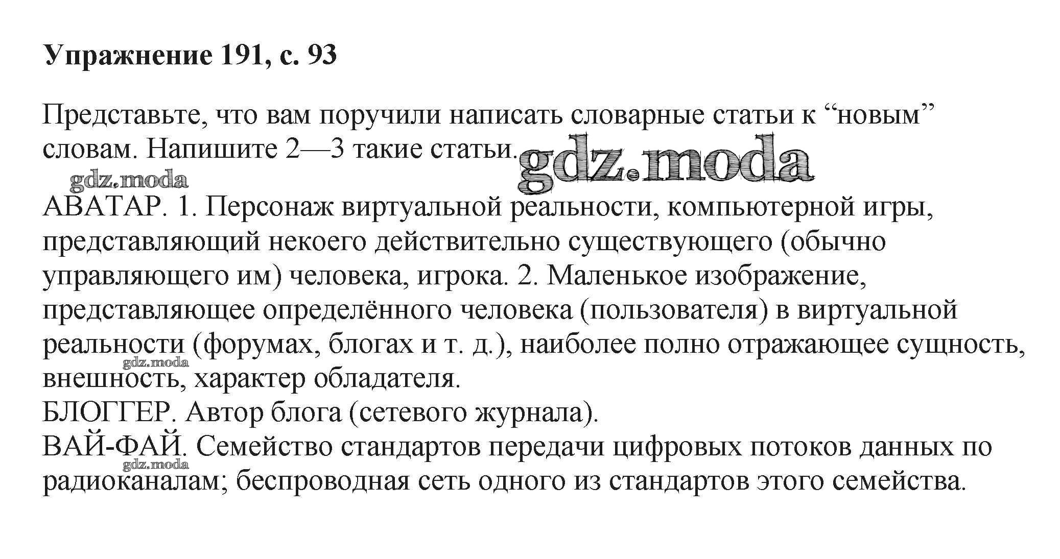 ГДЗ решение к заданию № 191 Русский язык 6 класс Баранов М.Т. Просвещение, Просвещение 2015, 2022 Часть 1, Часть 2 ФГОС бесплатно на гдз.мода!
