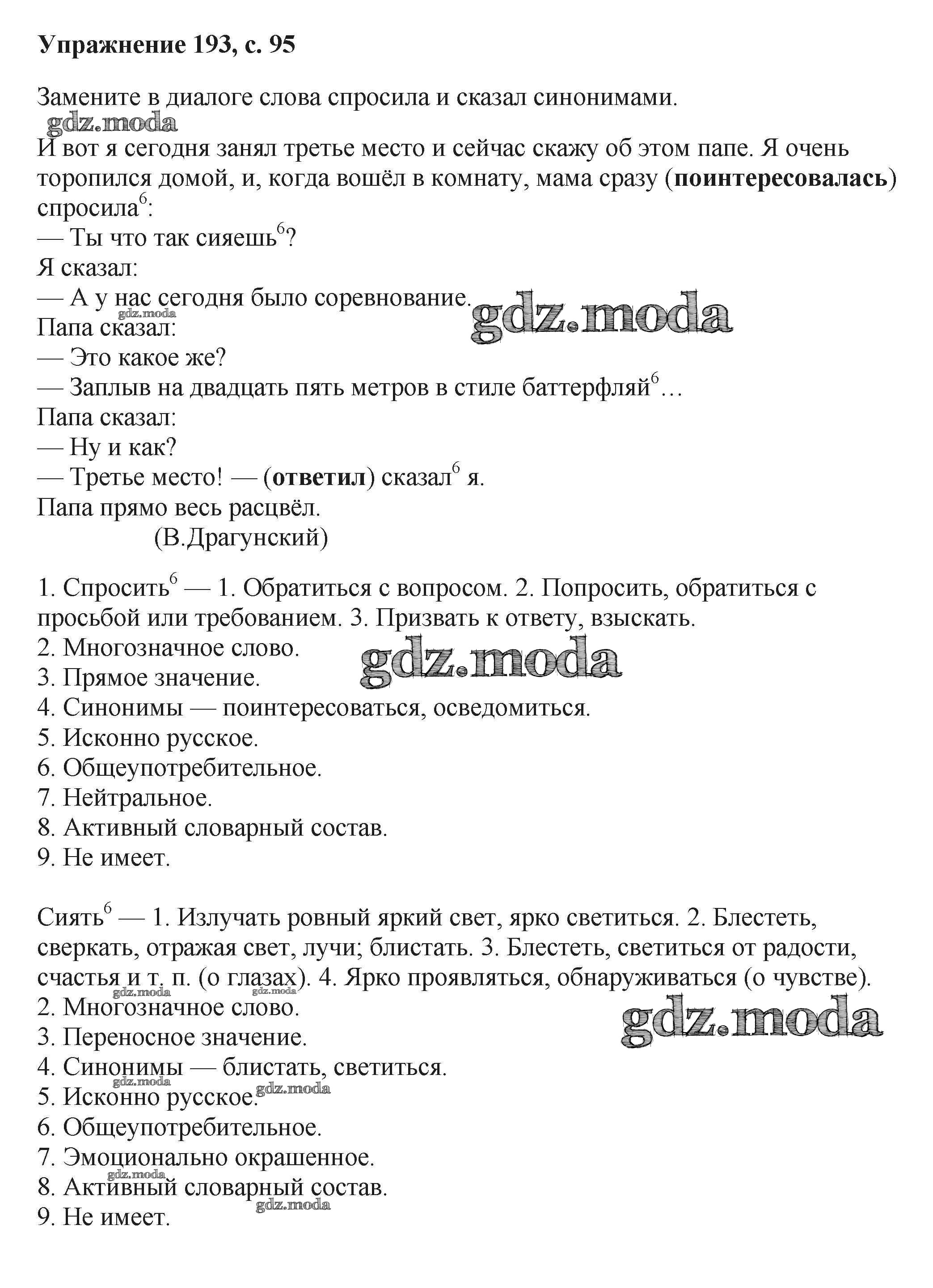 ГДЗ решение к заданию № 193 Русский язык 6 класс Баранов М.Т. Просвещение, Просвещение 2015, 2022 Часть 1, Часть 2 ФГОС бесплатно на гдз.мода!