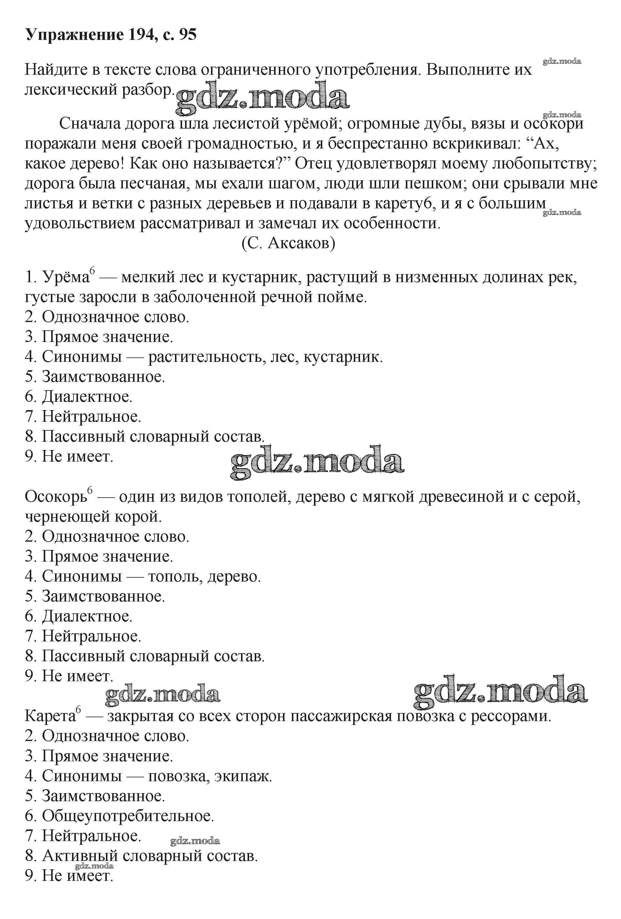 ОТВЕТ на задание № 194 Учебник по Русскому языку 6 класс Баранов