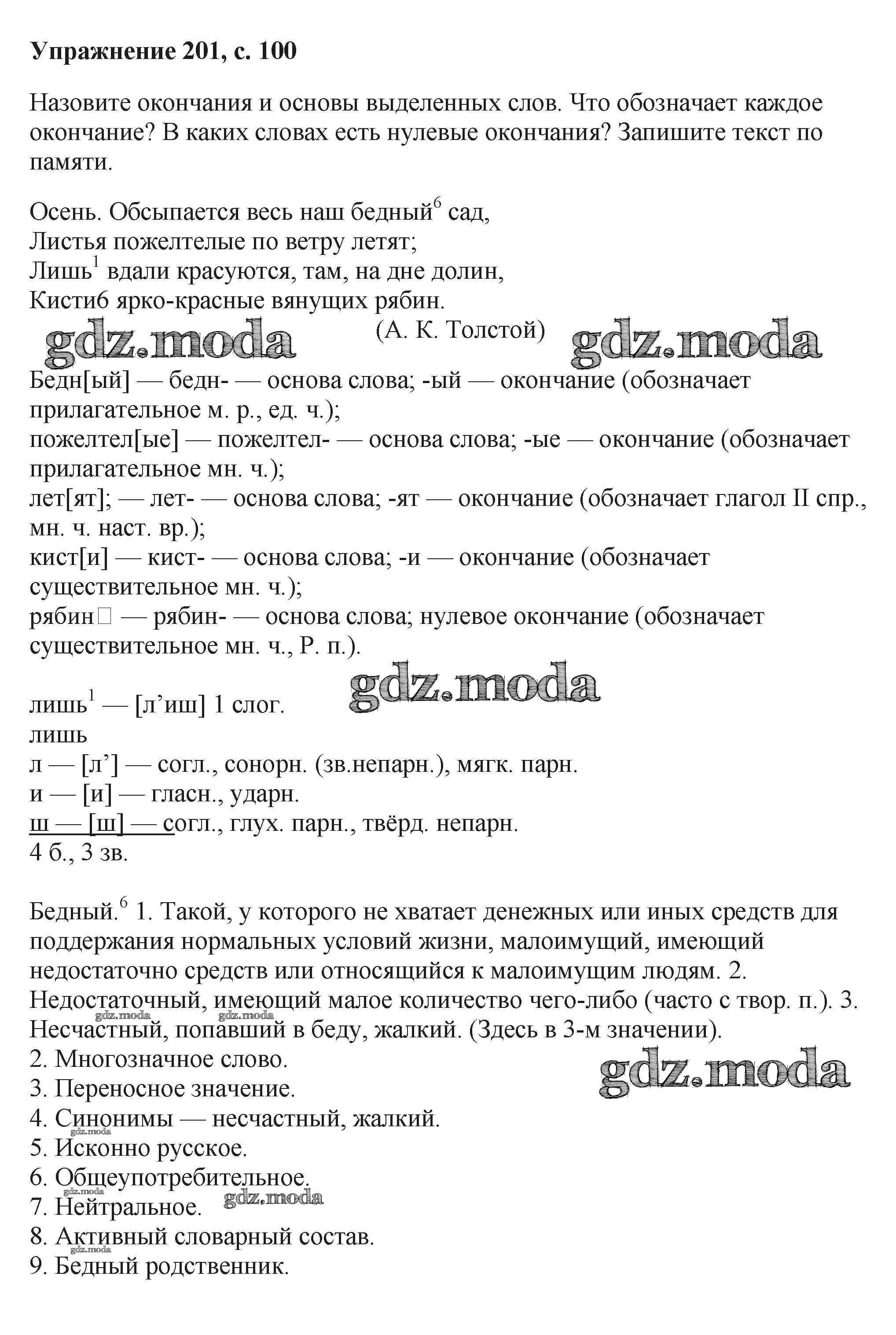 ОТВЕТ на задание № 201 Учебник по Русскому языку 6 класс Баранов