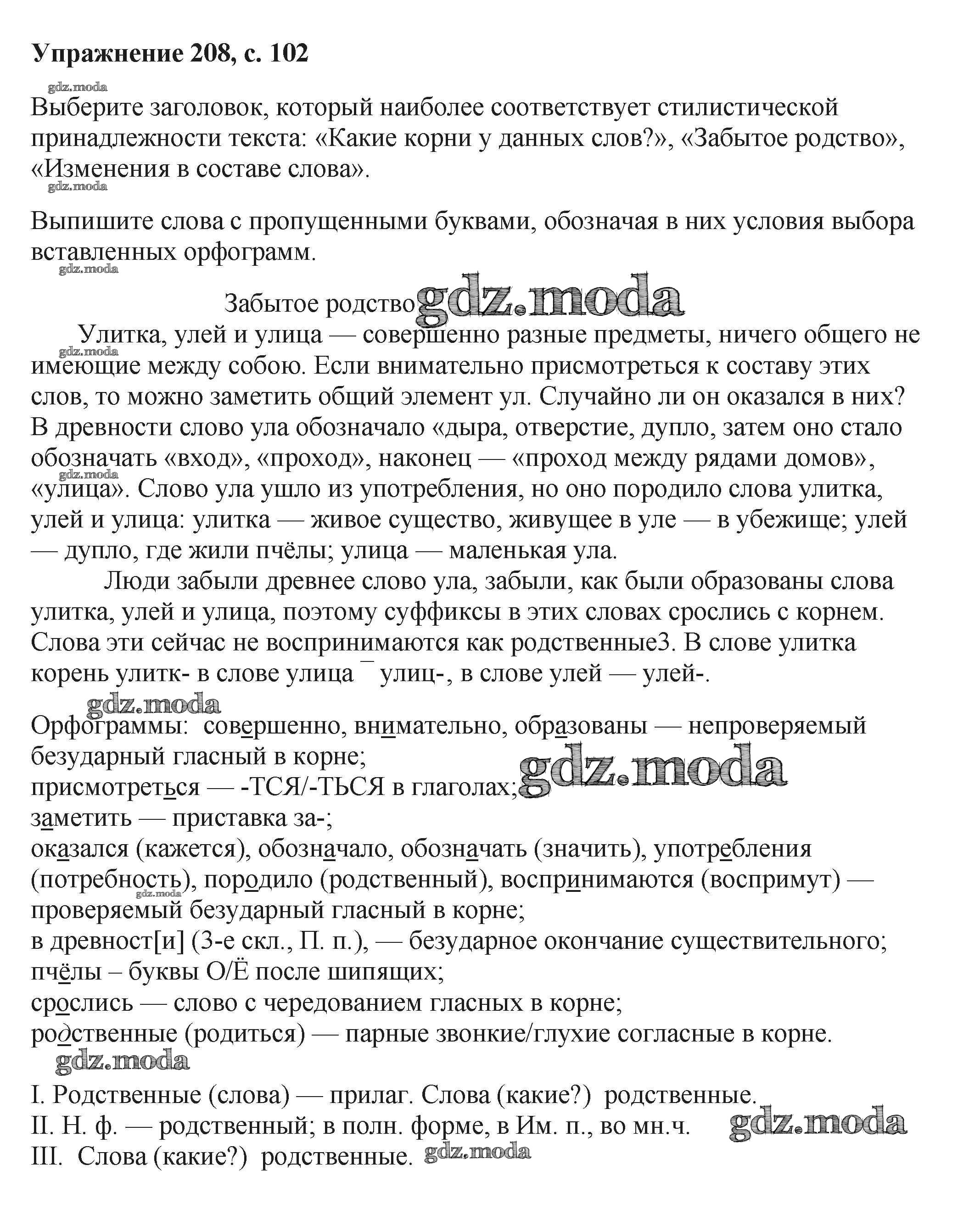 ОТВЕТ на задание № 208 Учебник по Русскому языку 6 класс Баранов
