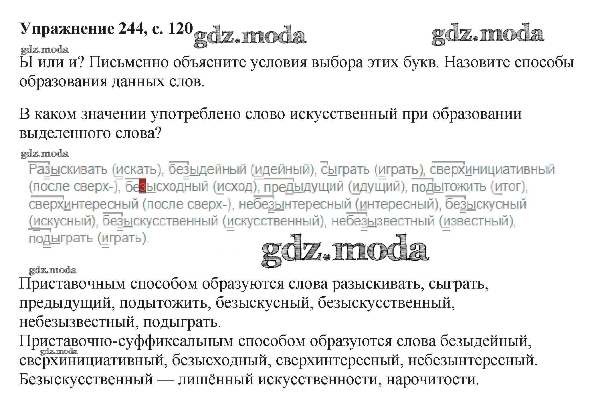 ГДЗ решение к заданию № 244 Русский язык 6 класс Баранов М.Т. Просвещение, Просвещение 2015, 2022 Часть 1, Часть 2 ФГОС бесплатно на гдз.мода!