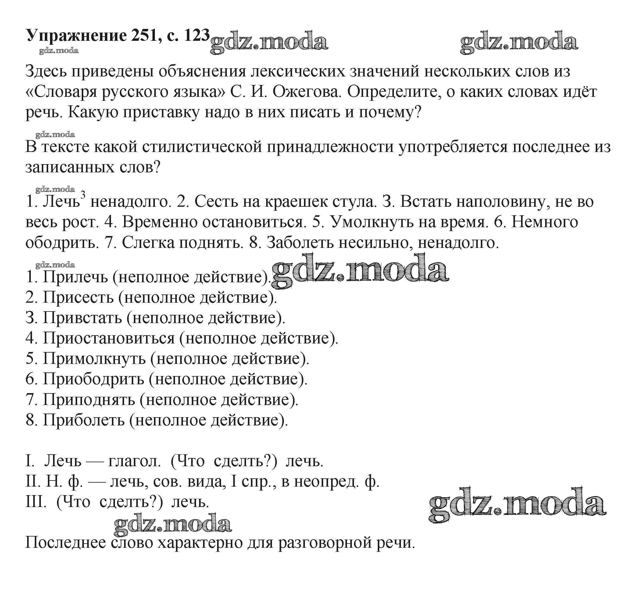 ОТВЕТ на задание № 251 Учебник по Русскому языку 6 класс Баранов