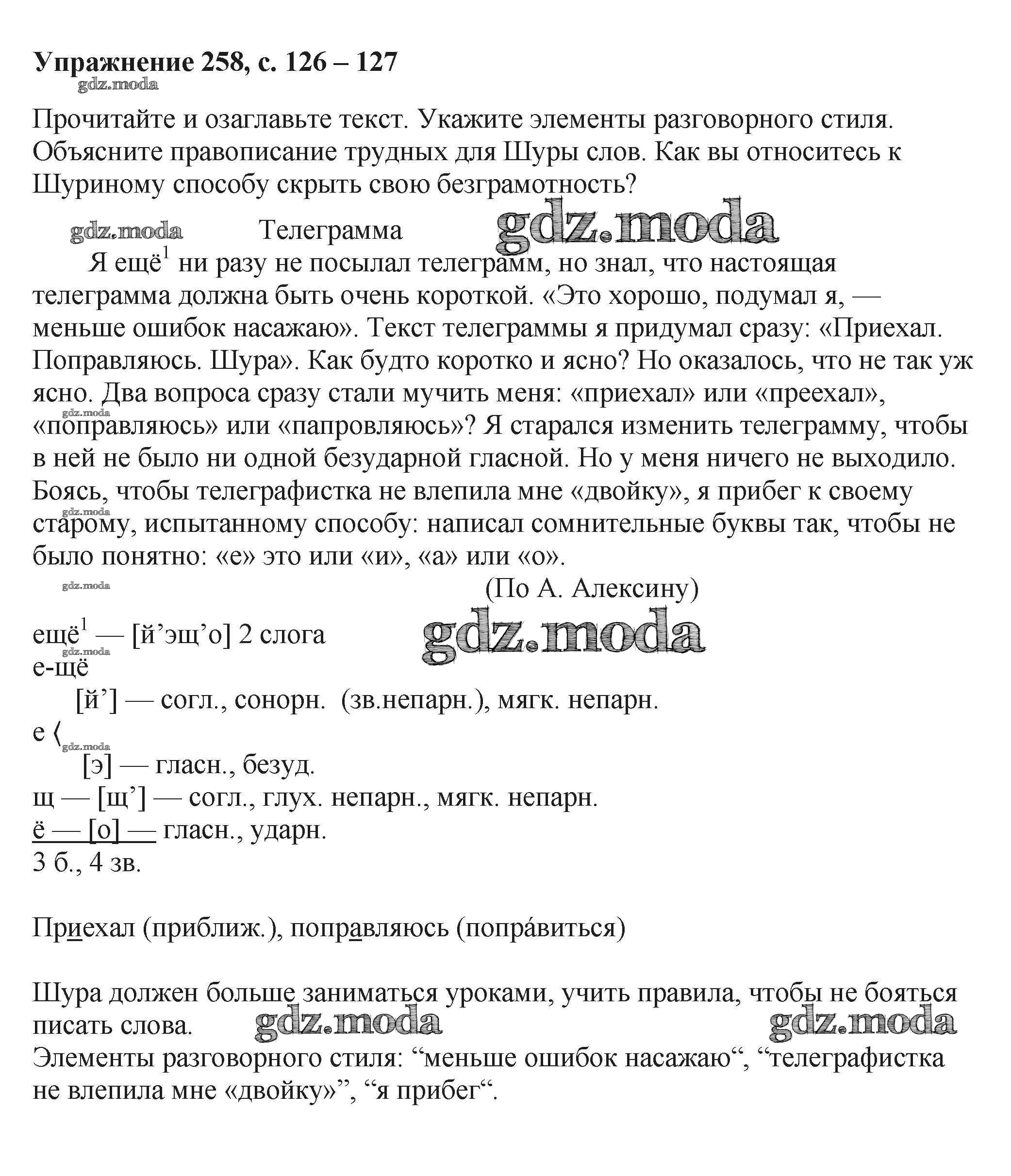 ОТВЕТ на задание № 258 Учебник по Русскому языку 6 класс Баранов