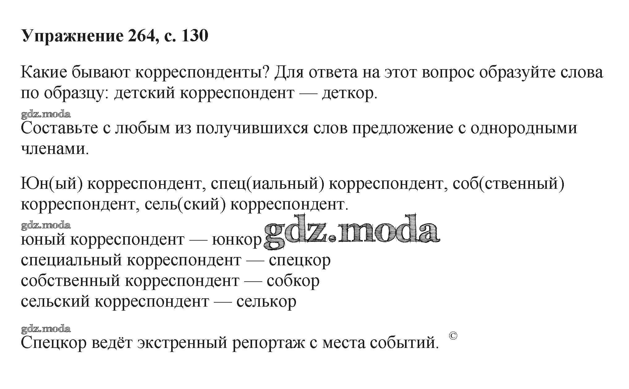 ГДЗ решение к заданию № 264 Русский язык 6 класс Баранов М.Т. Просвещение, Просвещение 2015, 2022 Часть 1, Часть 2 ФГОС бесплатно на гдз.мода!