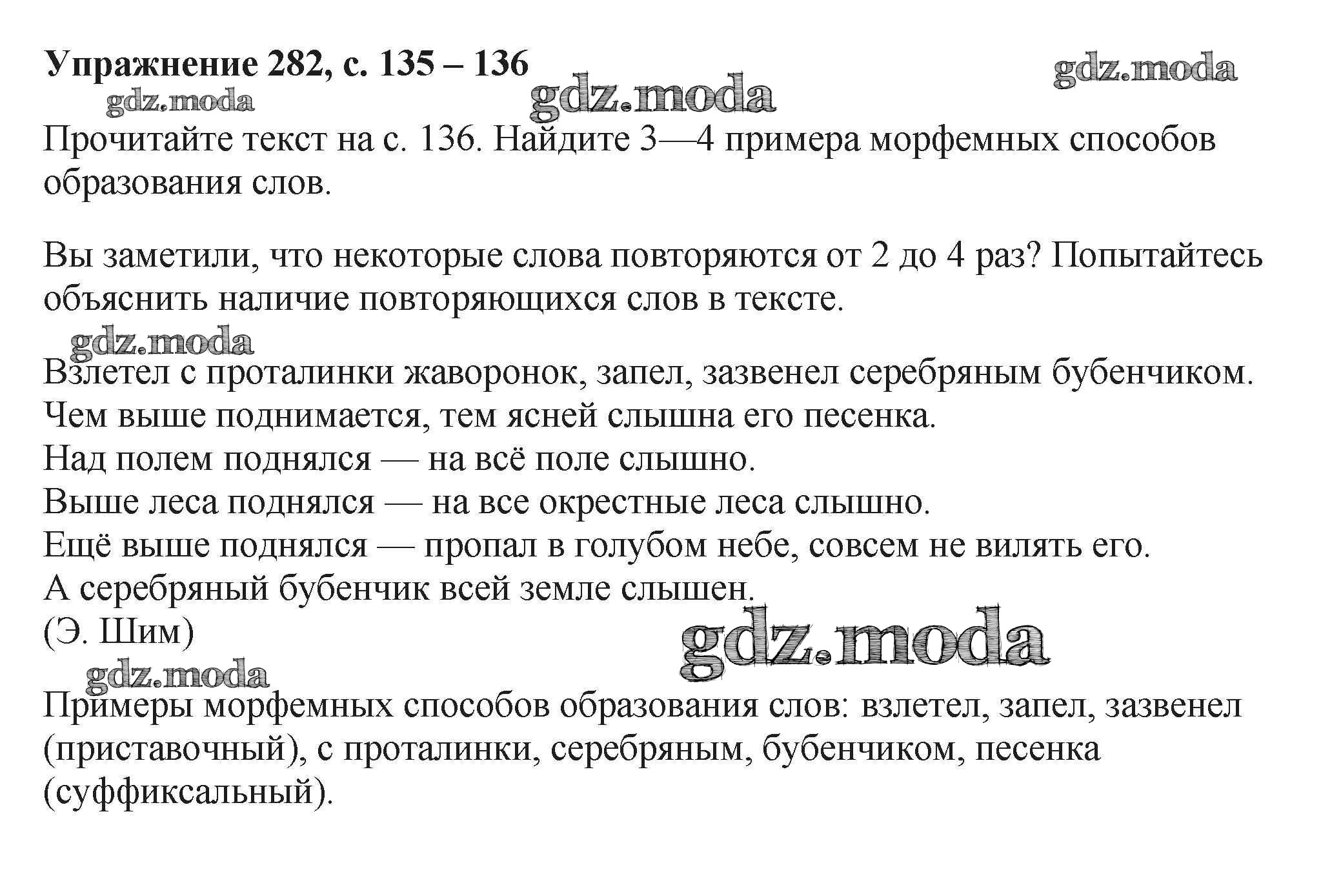 ОТВЕТ на задание № 282 Учебник по Русскому языку 6 класс Баранов