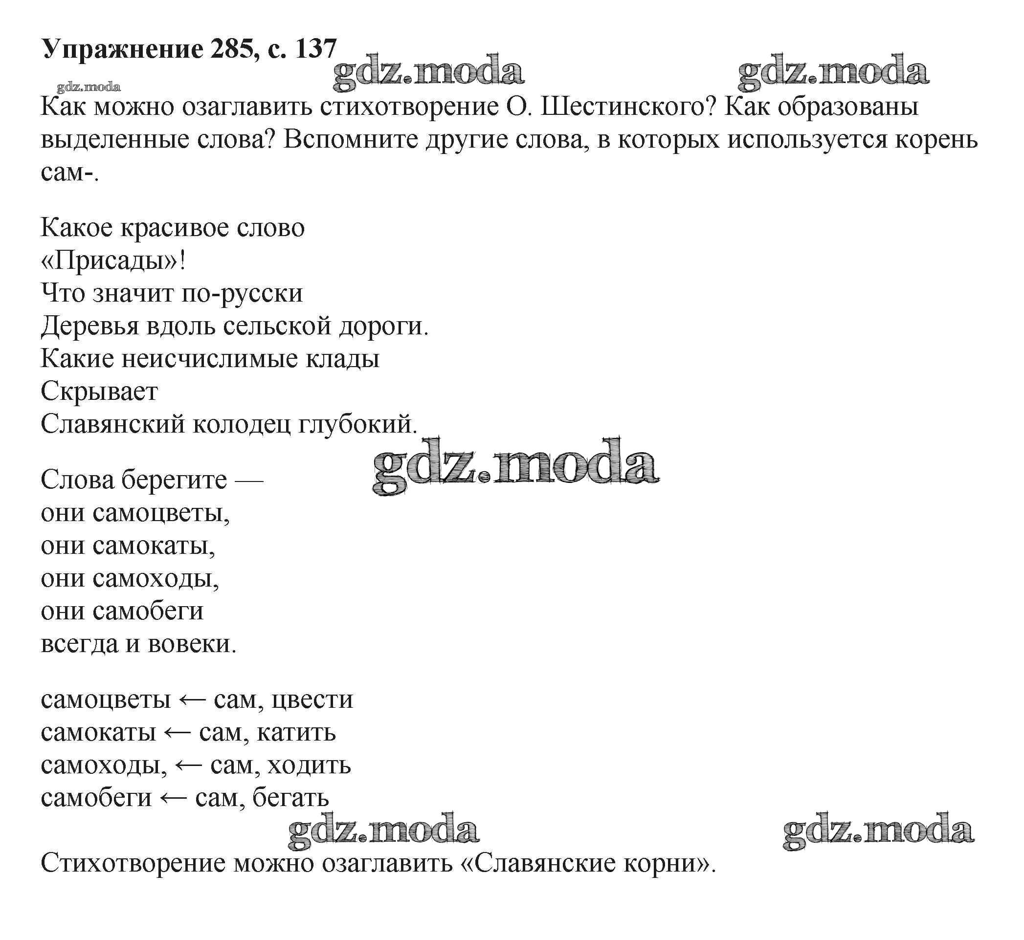 ОТВЕТ на задание № 285 Учебник по Русскому языку 6 класс Баранов